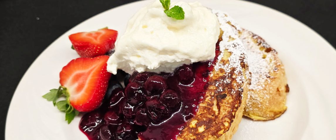 Choice of homemade bannock french toast or waffle with berry sauce