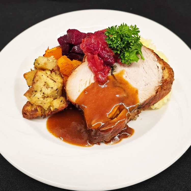 Fire-roasted turkey with tomato cranberry relish