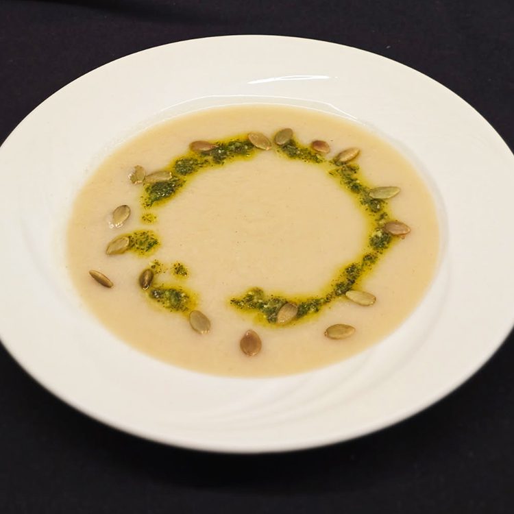 Roasted squash soup with bannock croutons