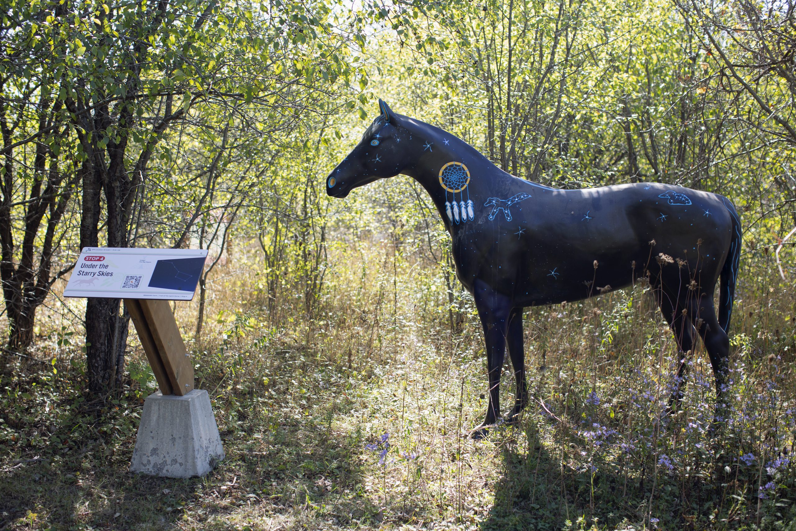 This self-guided and interactive tour brings you across Madahoki Farm, to learn more of the rich history and resilience of the Ojibwe Spirit Horse – a rare and endangered breed and Canada’s only Indigenous bred horse. Learn more of their history through stories, teachings, art installations and even a fun augmented reality experience. Allow up to 1 hour for the experience.